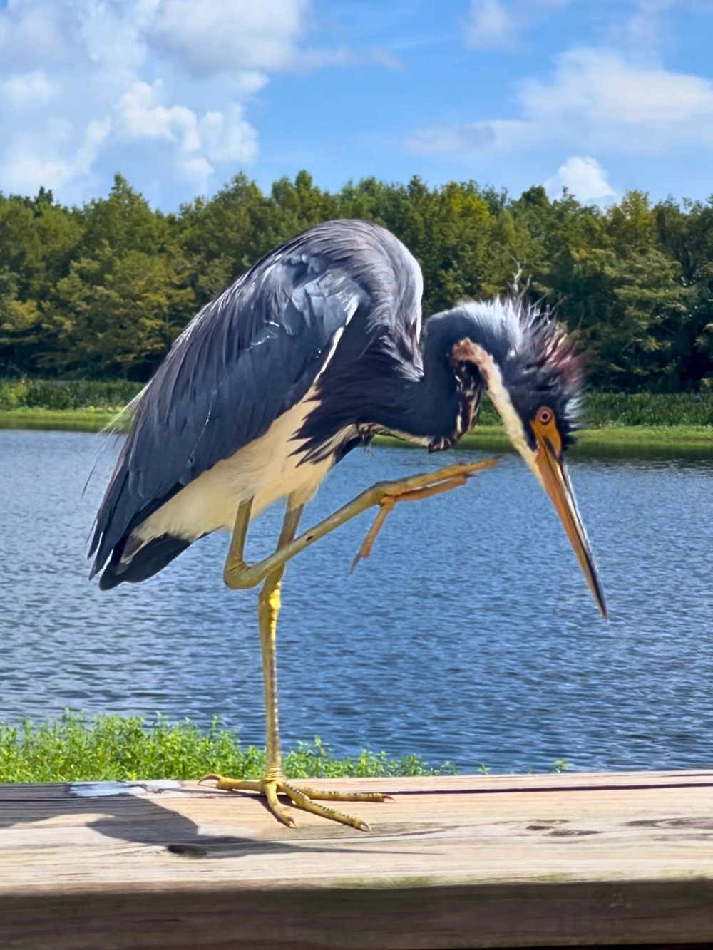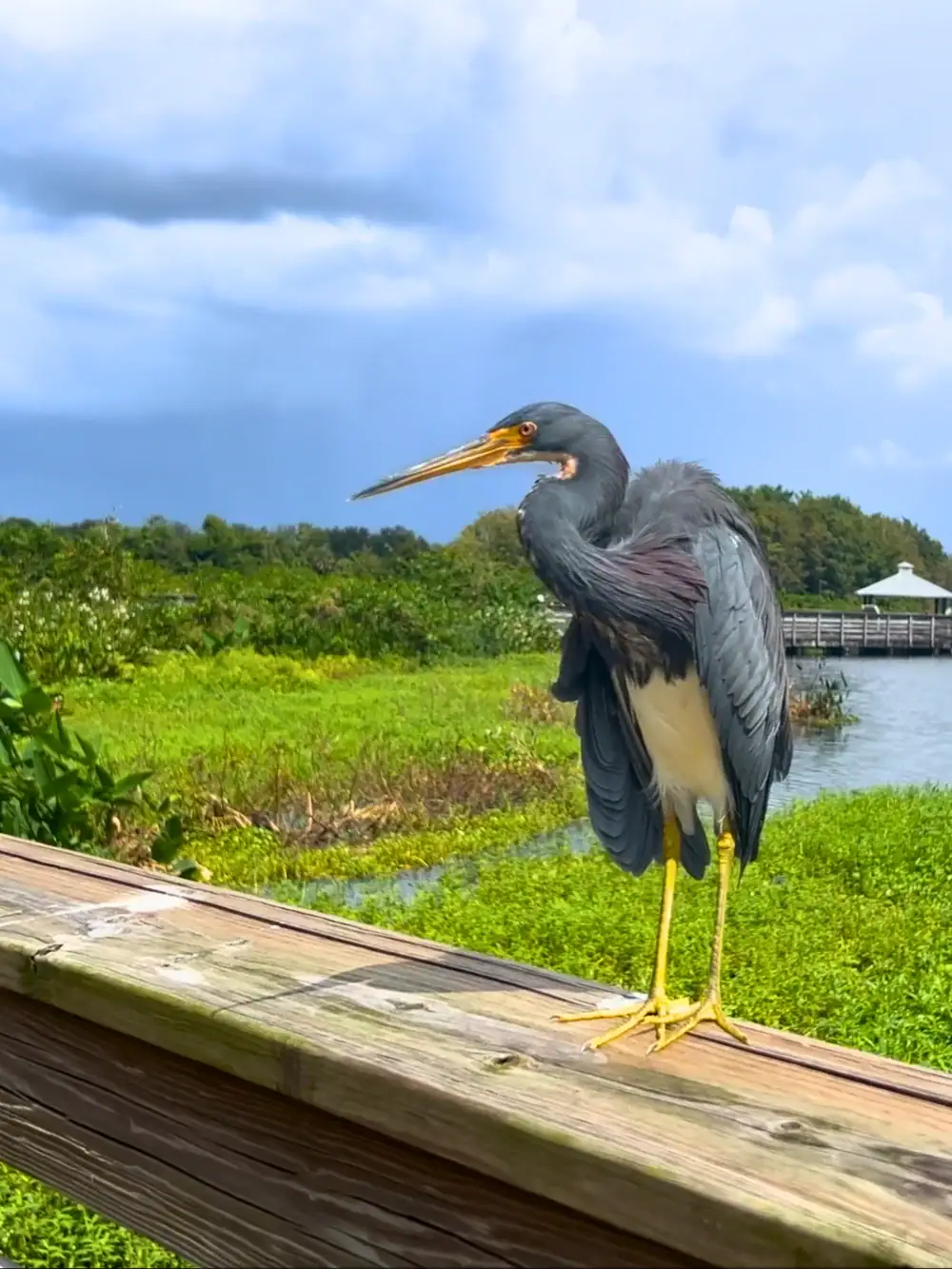 One of our favorite birds to see is the tricolored heron. They are used to people now, so you’ll often find them on the rails of the boardwalk, showing off! Of course, it’s important to stay respectful and not try to touch or pet their feathers.